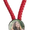 Llavero Metálico Circular para Sublimación con Cuerda Trenzada Roja, Dije Redondo para Personalizar con Fotos o Logos.