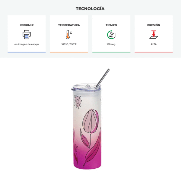 ¡Lleva tus diseños a otro nivel! Este vaso sublimable tipo tumbler de 25oz es perfecto para personalizar con estilo gracias a su acabado frosted degradado. Ideal para emprendedores, regalos únicos o simplemente para disfrutar tus bebidas favoritas con un toque personal.